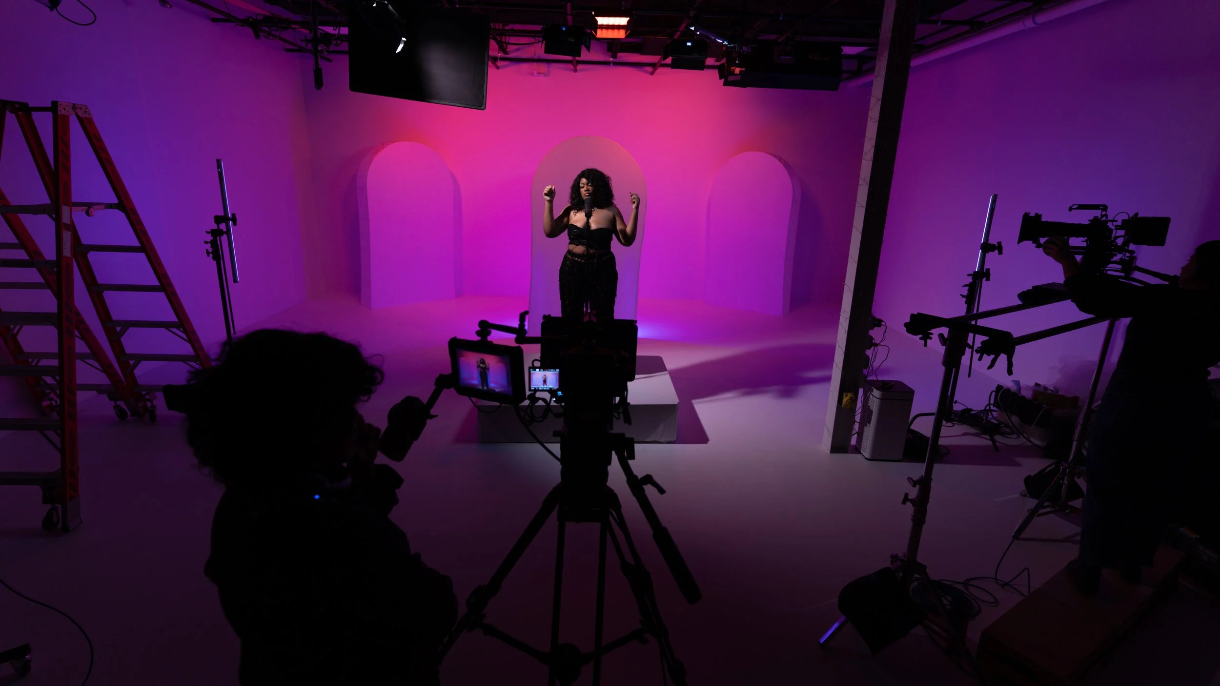 Our Director of Photography and Lead Producer Stephanie Houten directs camera crews using a variety of techniques, including gimbal operation, dolly shots, interview setups, overhead rigs, choreography, and more.